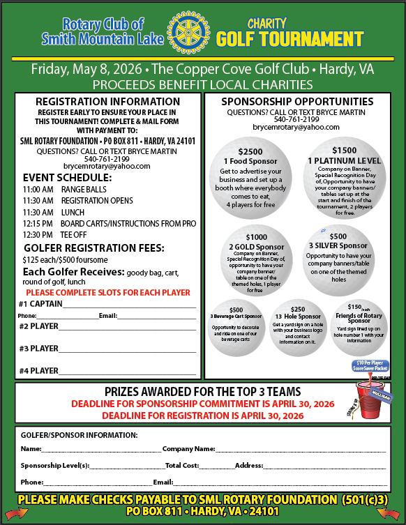 Don’t miss this exciting tournament! Sponsorship opportunities going fast!!!